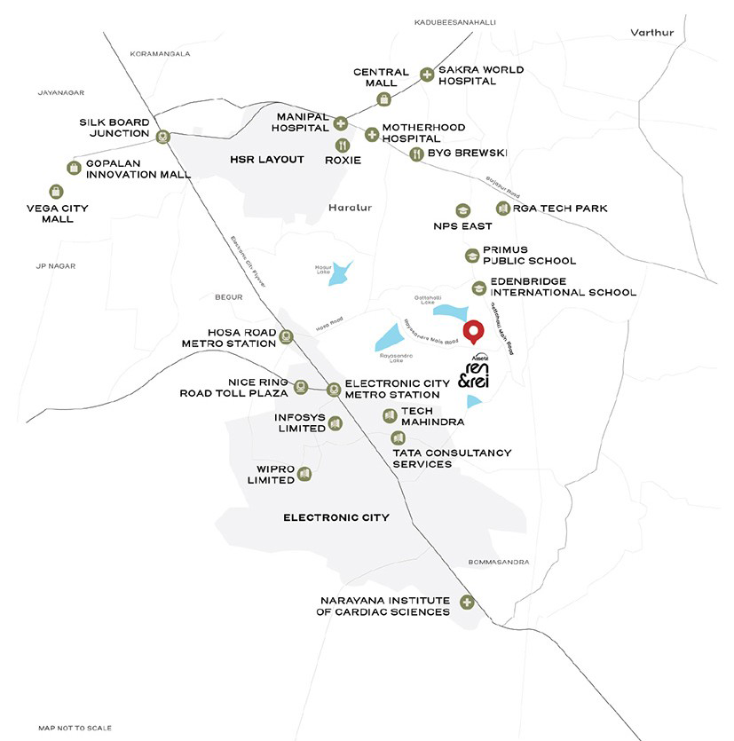 Strategically located near Sarjapur Road, it provides effortless connectivity to key IT hubs, top educational institutions, healthcare centers, and lifestyle destinations, making it the perfect balance of exclusivity and convenience.